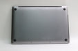The screen is in good condition with some scratches and nicks. The display lid is in good condition with some light scratches. The keyboard is in good condition with some wear. The palm rest is in good condition with some light scratches. The bottom case is in good condition with some light scratches.